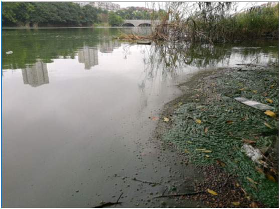 近年來,隨著污染的長期累積,西河水體逐漸不堪重負(fù),富營養(yǎng)化嚴(yán)重,水質(zhì)呈劣V類,水域的自然生態(tài)系統(tǒng)、生物多樣性和良性的食物鏈遭到破壞,耐污能力很強(qiáng)的藍(lán)藻肆意生長,而藍(lán)藻因表面被包裹膠狀的多糖類物質(zhì)難以被魚類攝食,不能形成食物鏈,于是藍(lán)藻爆發(fā)成害,水體伴有異味。