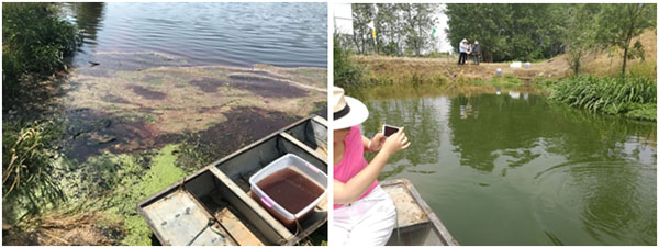 2017年5月11日南京蓋亞生物工程有限公司聯(lián)合成都大開(kāi)應(yīng)用技術(shù)研究所采用RhP體系技術(shù),針對(duì)船塘水體黑臭開(kāi)展應(yīng)急治理,歷經(jīng)近兩個(gè)月時(shí)間,船塘水質(zhì)已發(fā)生明顯變化:水體黑臭得以消除,尤其因工業(yè)污染產(chǎn)生的刺鼻性氣味已基本消除,水體透明度提升至40cm,水體富營(yíng)養(yǎng)化程度大幅降低,水生態(tài)環(huán)境初步建立,食物鏈得以完善,水體中藻類種群發(fā)生改善,大量有益藻類和浮游動(dòng)物開(kāi)始生長(zhǎng),水色已轉(zhuǎn)變?yōu)榈G色。
