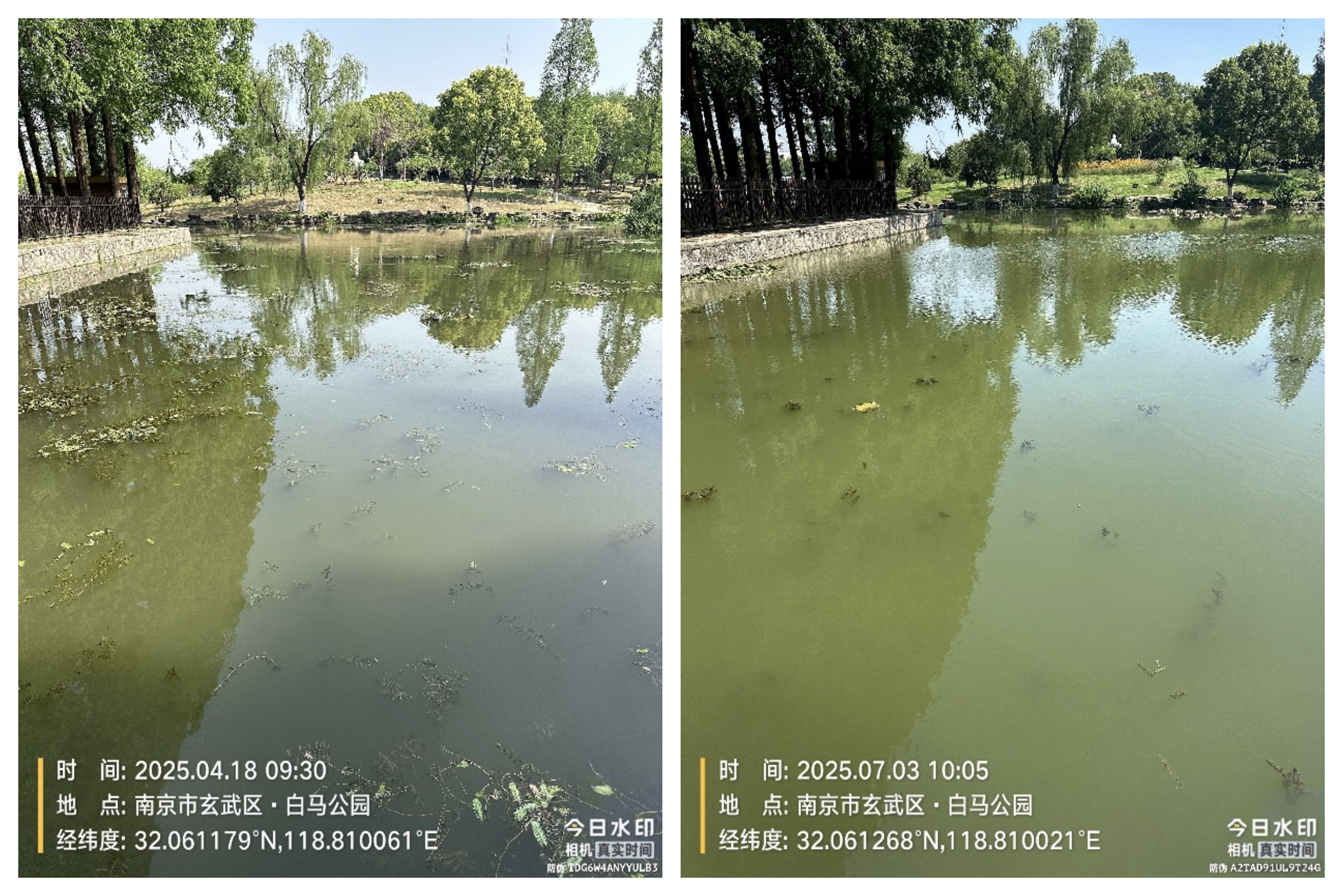 2025年4月,南京蓋亞生物工程有限公司攜自主創(chuàng)新的RhP生態(tài)修復(fù)體系,踏入這片亟待復(fù)蘇的水域,開(kāi)啟了一場(chǎng)靜水深流的生態(tài)煥新之旅。短短數(shù)月間,科技與自然的協(xié)奏曲,奏響了令人驚嘆的華章!